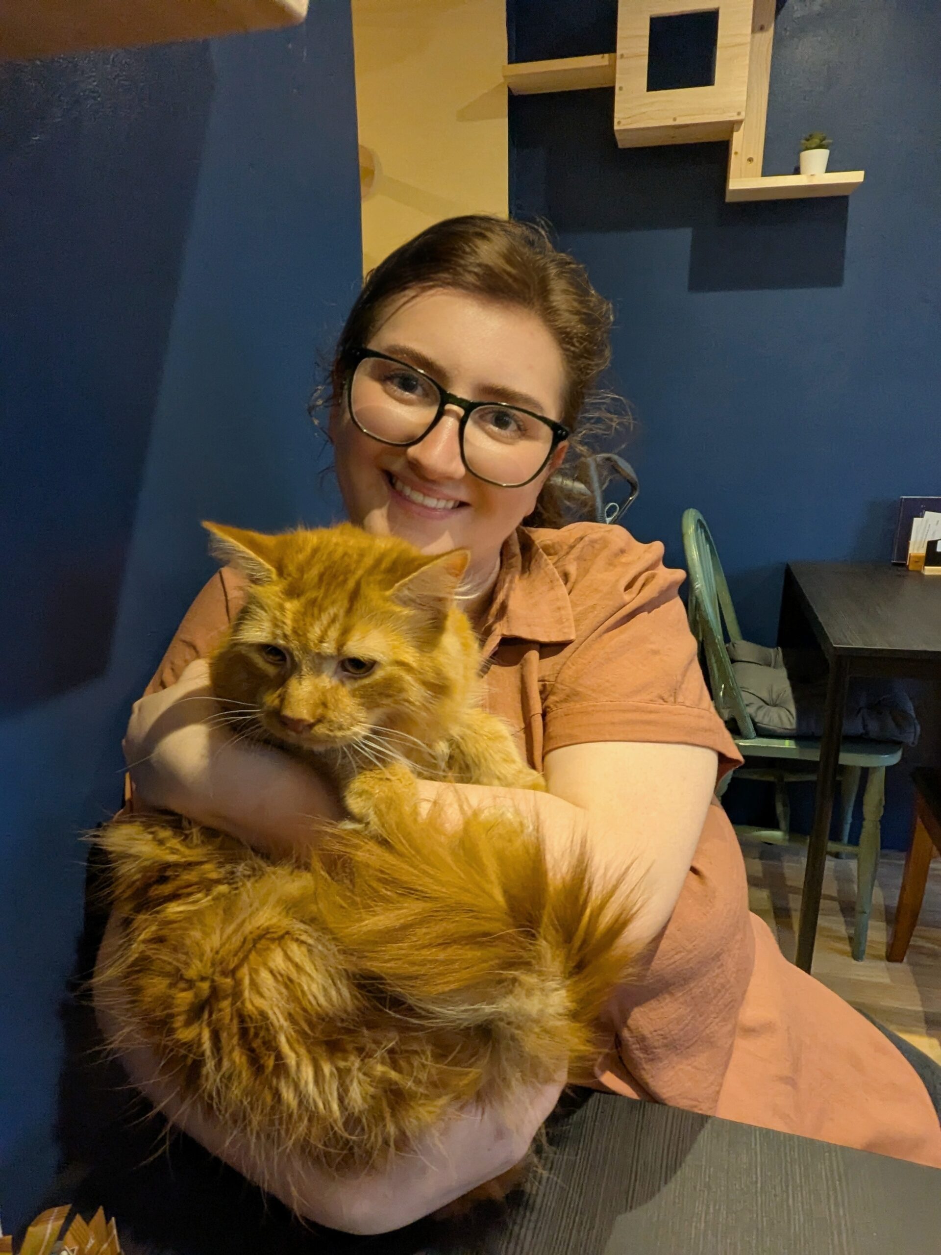 Pictured: Scarlett and Toast the cat in the Puss in Books cafe