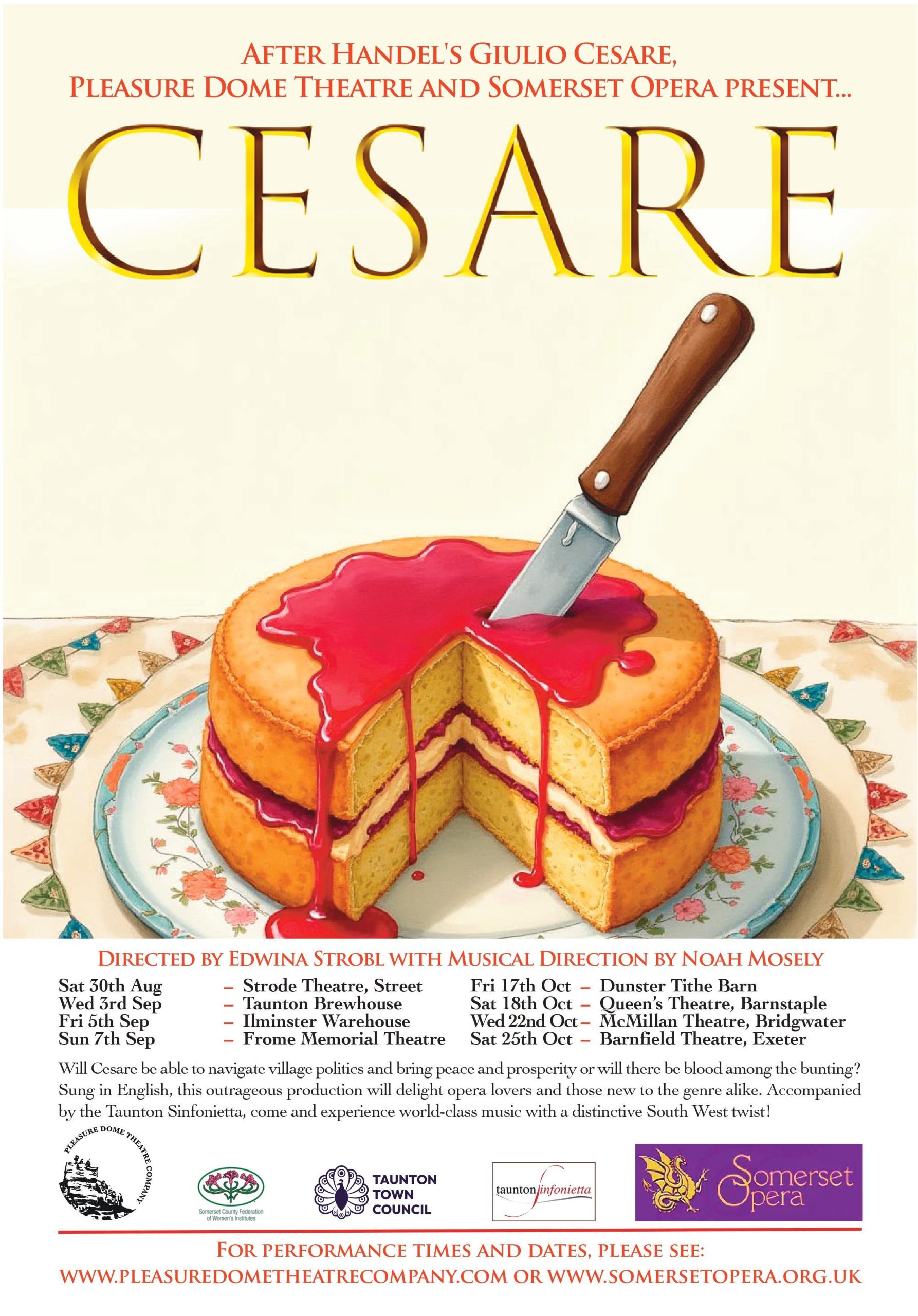 The performance is presented by Pleasure Dome Theatre in partnership with Somerset Opera, the Taunton Sinfonietta and the Women’s Institute.