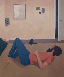 Her paintings explore themes of intimacy, communication, solitude and happiness.