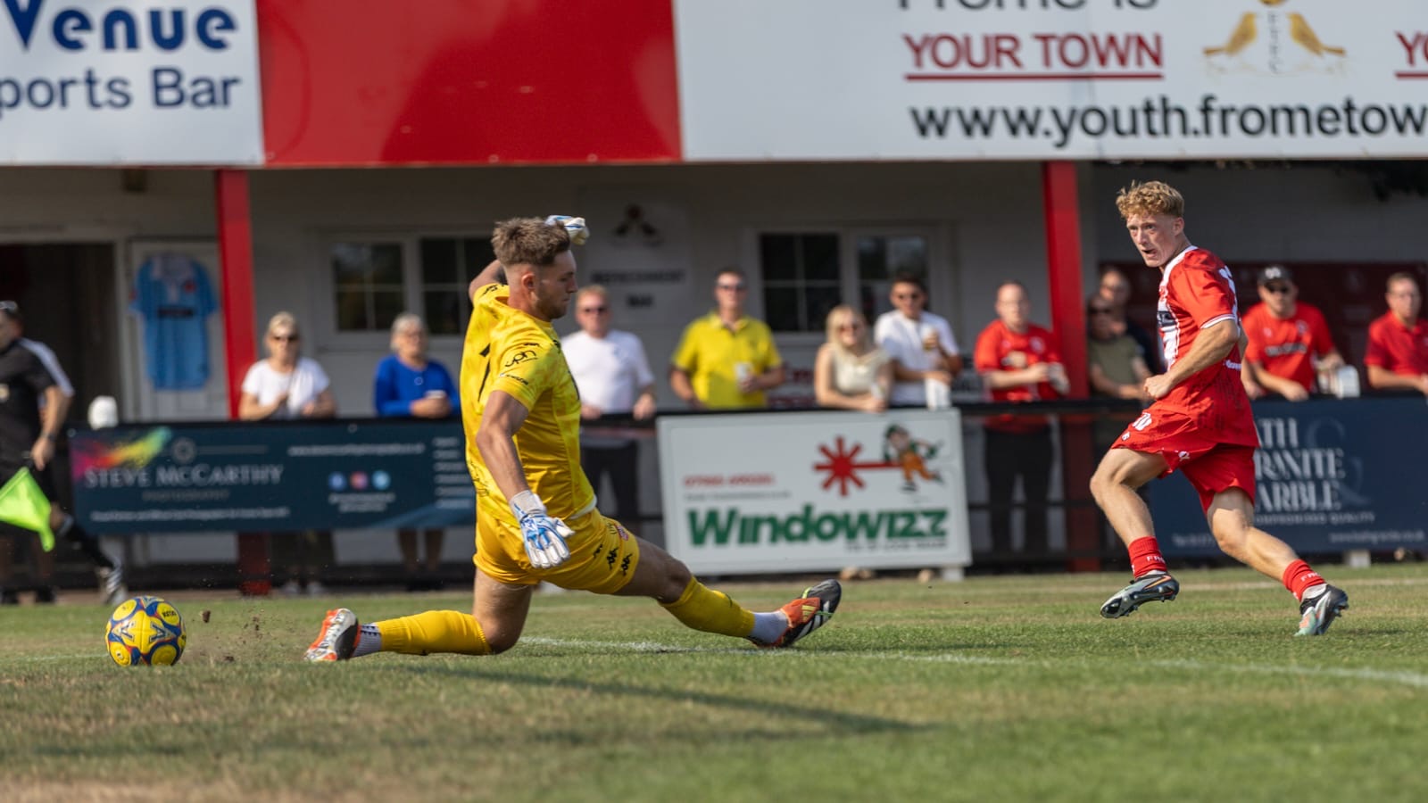 Zac Drew only scored one goal in 37 games last season but the No.10 has put away three in three games in all competitions so far this season. The assist for this goal came from Archie Ferris, who waited for the former Yate forward to make his run into the box and fed Zac who slotted home past the goalkeeper.