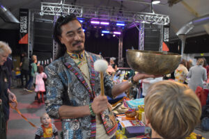 “Performances included the Scottish bagpipes, a Japanese kendo demonstration, dancing from the Kujawy Polish group and dancing from the newly-arrived Ukrainian community. Children were also entertained by Nieves Moro with Spanish theatre, and Mahesh with Indian storytelling. Trinity First School pupils sang and played on belleplates and ukuleles, and Avanti Park School pupils sang too.