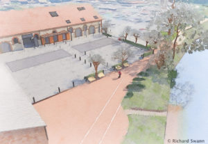 Proposals have been revealed for a new formal public square in Frome. ‘Riverside Place’ is the brainchild of the Cheese & Grain working with Richard Swann, architect of their recent refurbishment and the Bert Jansch Recording Studio at the ‘tower’ end of the building, due for construction later this year.