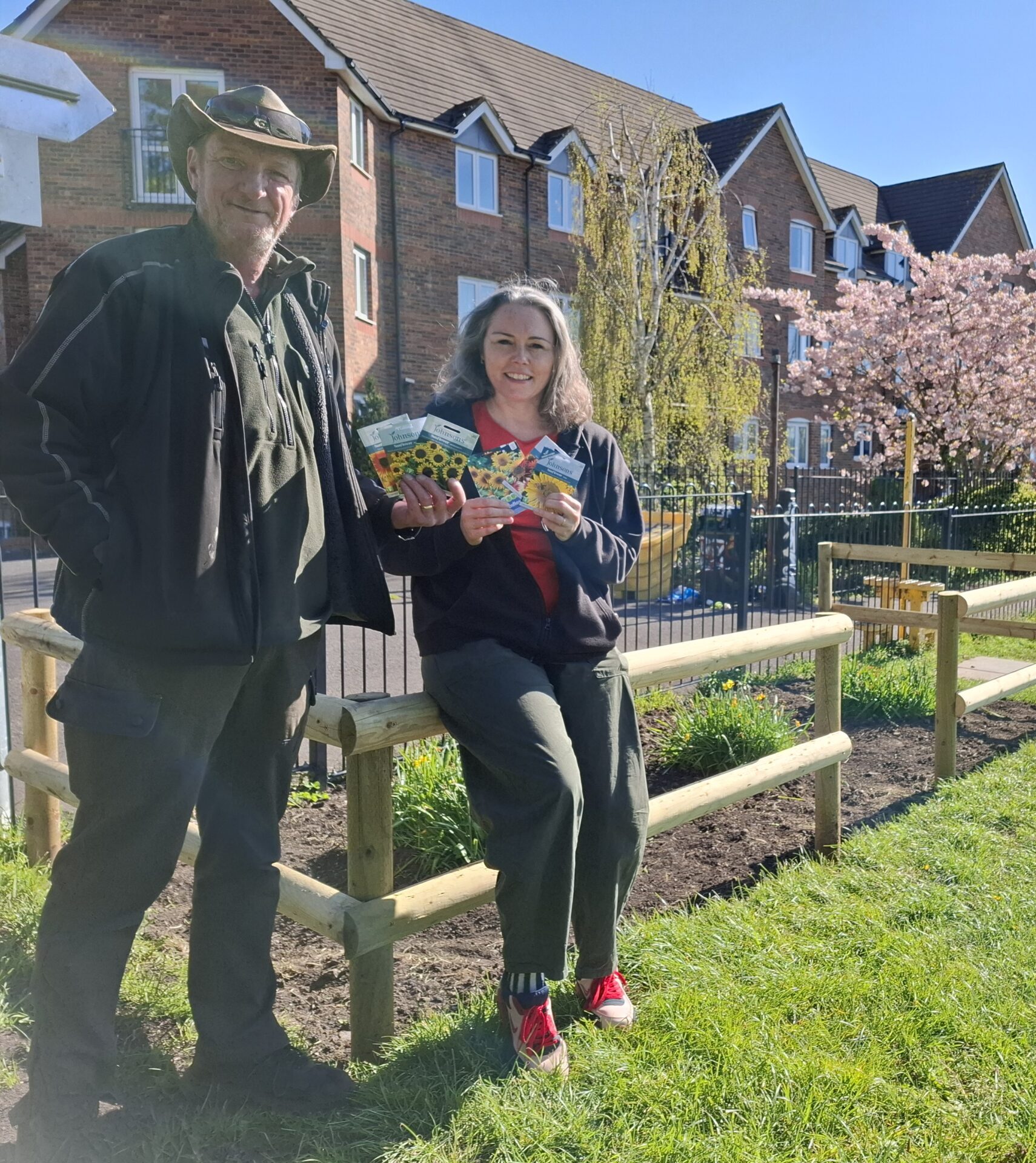 Pictured: Ranger Mark Branson with Cllr Lyndsey Mayhew at the new sunflower bed